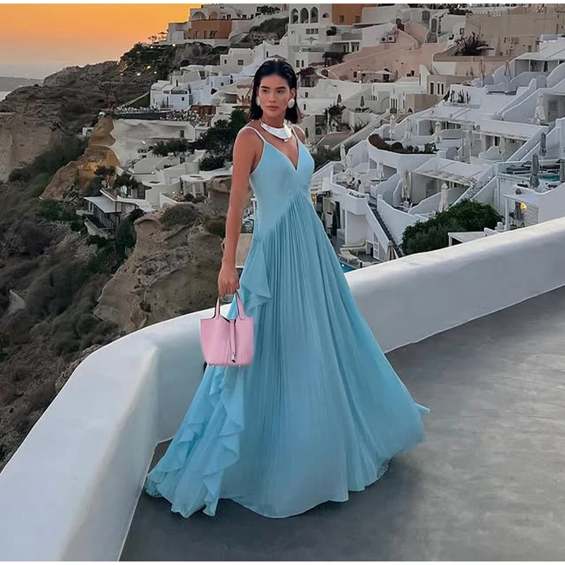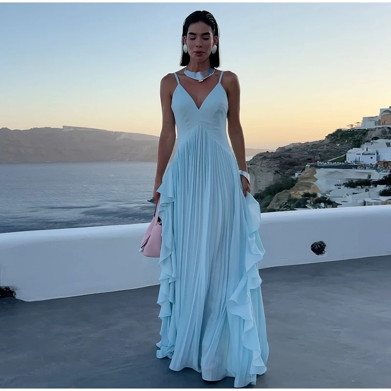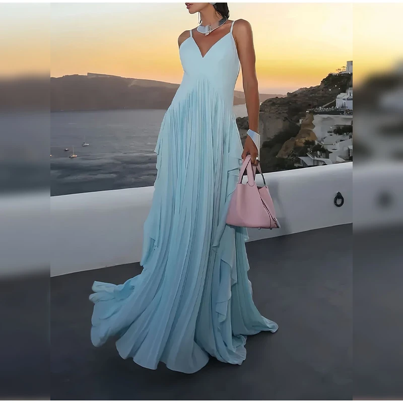 The floor-length gown adds a touch of sophistication and grace to any occasion.